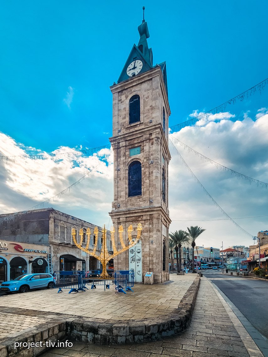 חנוכיה בכיכר השעון, דצמבר 2023 | ראו גם: חנוכיות בתל אביב