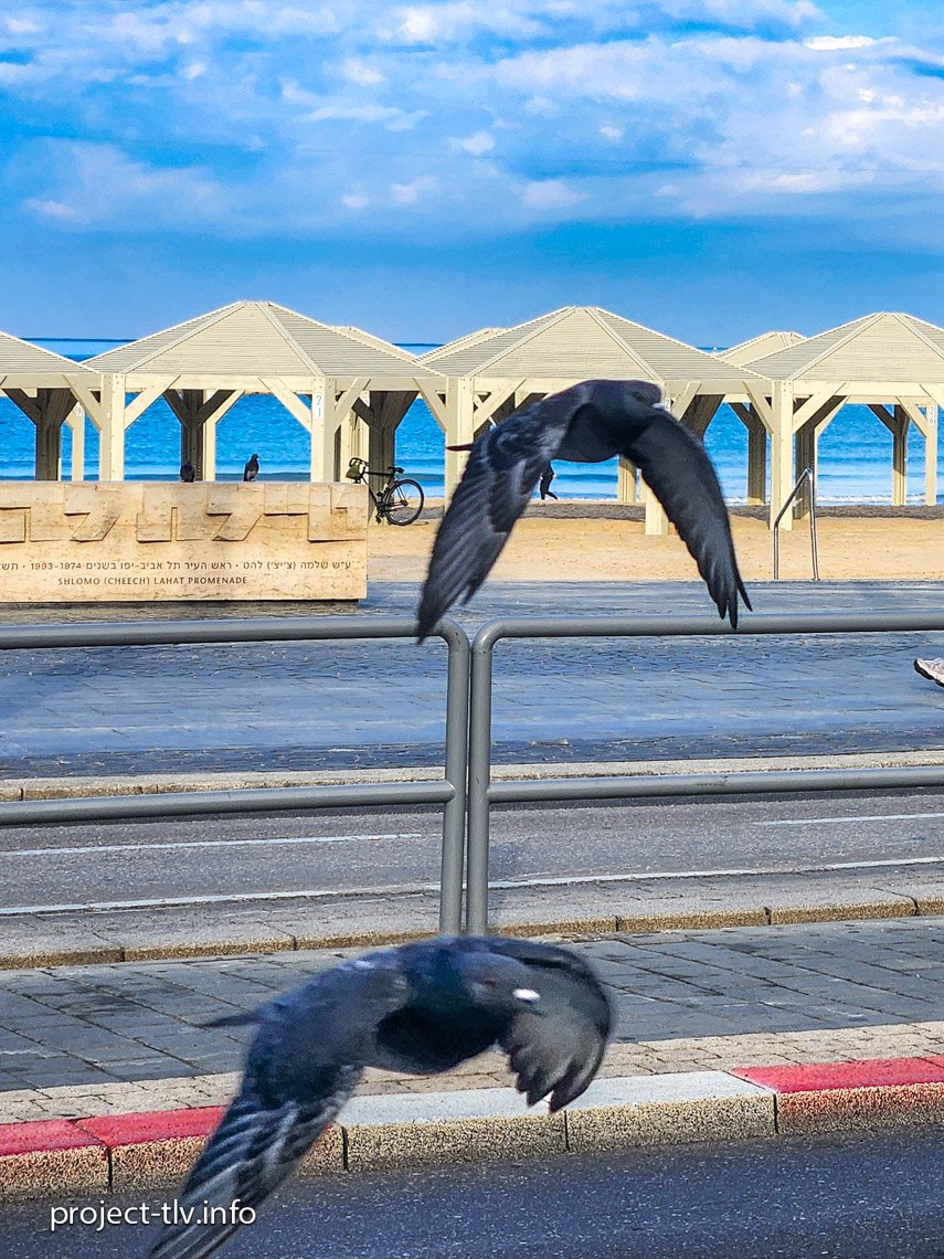 יונים בגינה ציבורית ברחוב בן עטר, אפריל 2022