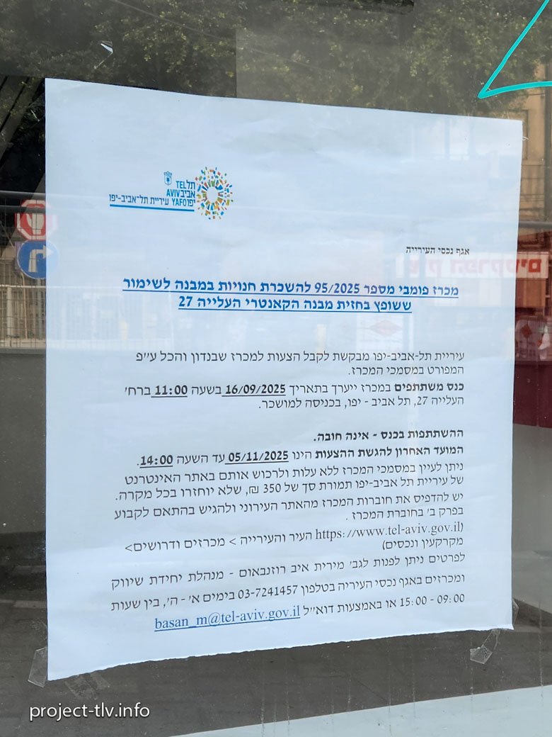 מכרז פומבי להשכרת חנויות במבנה לשימור – קאנטרי העלייה, אוקטובר 2025
