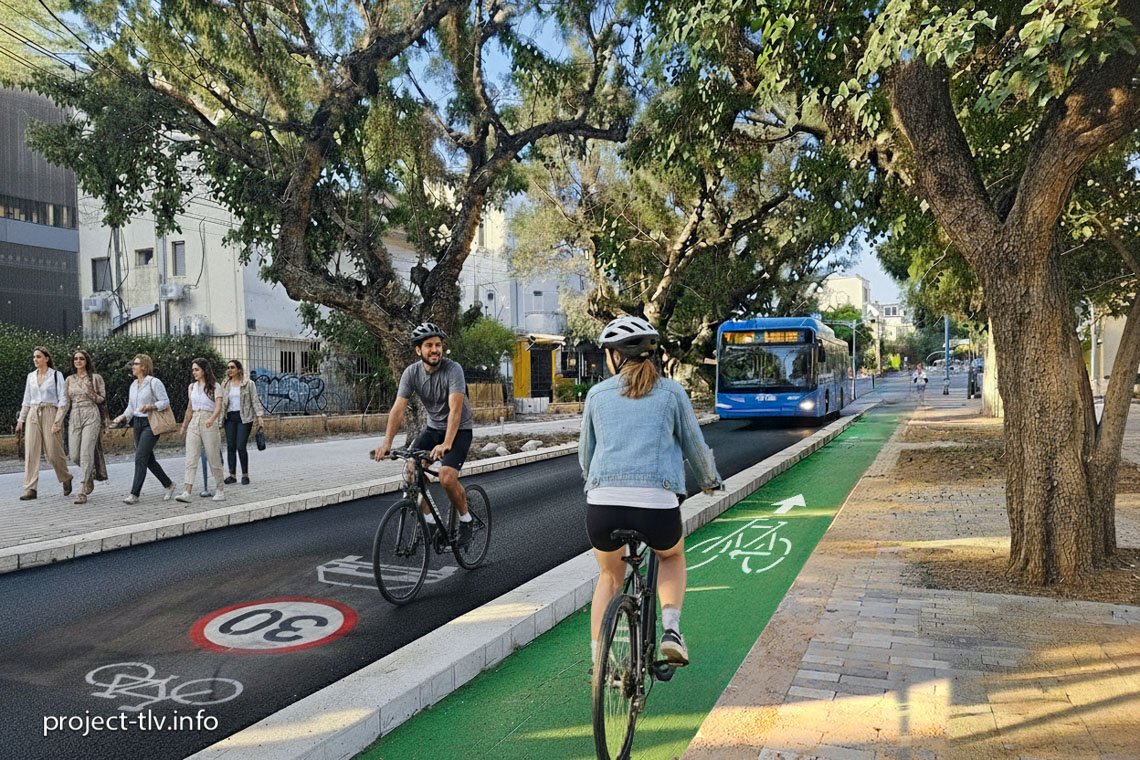 הצעה רעיונית מטעם "פרויקט תל אביב" להפיכת רחוב קינג ג'ורג' לחד סטרי לכיוון צפון והוספת שביל אופניים לכיוון דרום