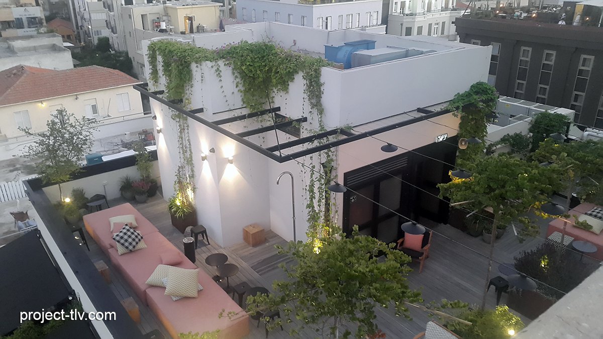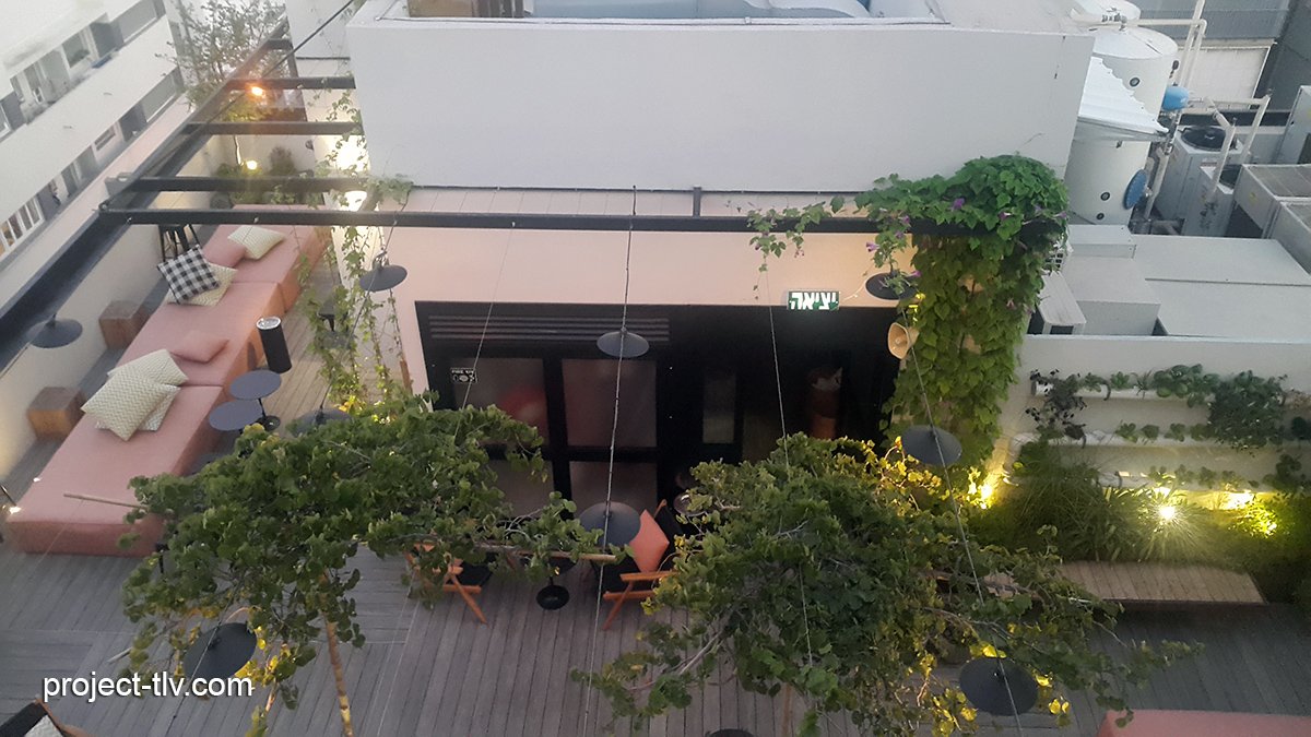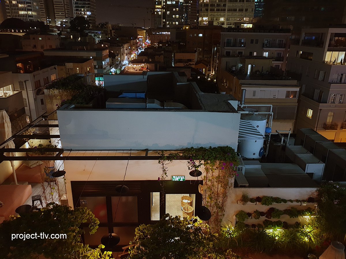 גג המלון על רקע הנוף האורבני מגדלי שדרות רוטשילד, יולי 2022