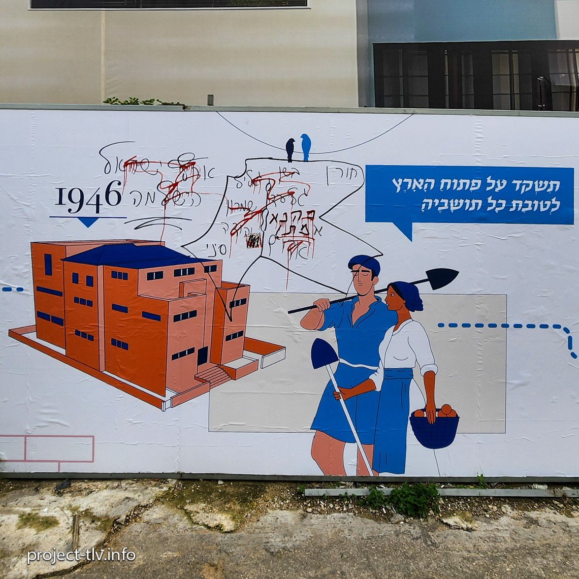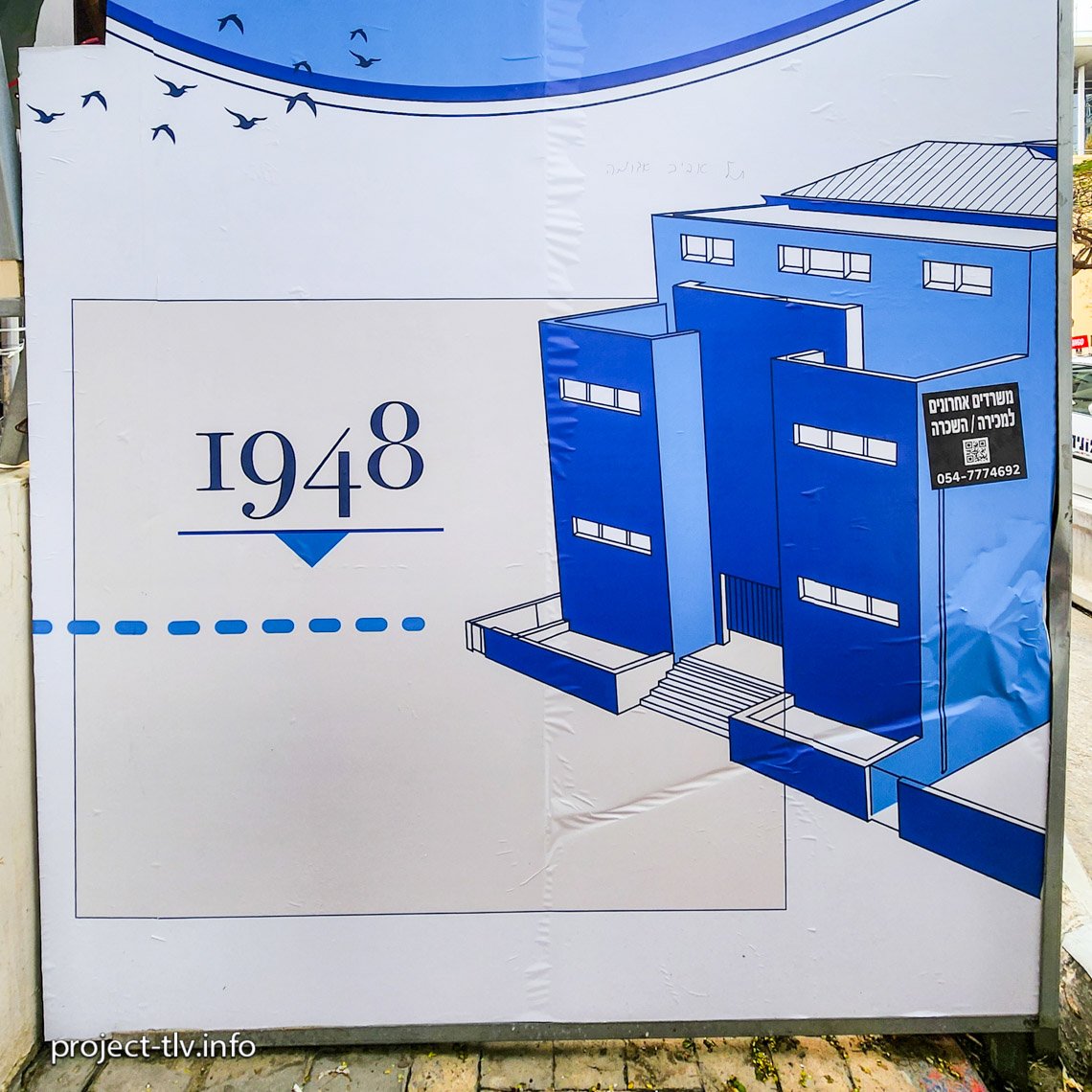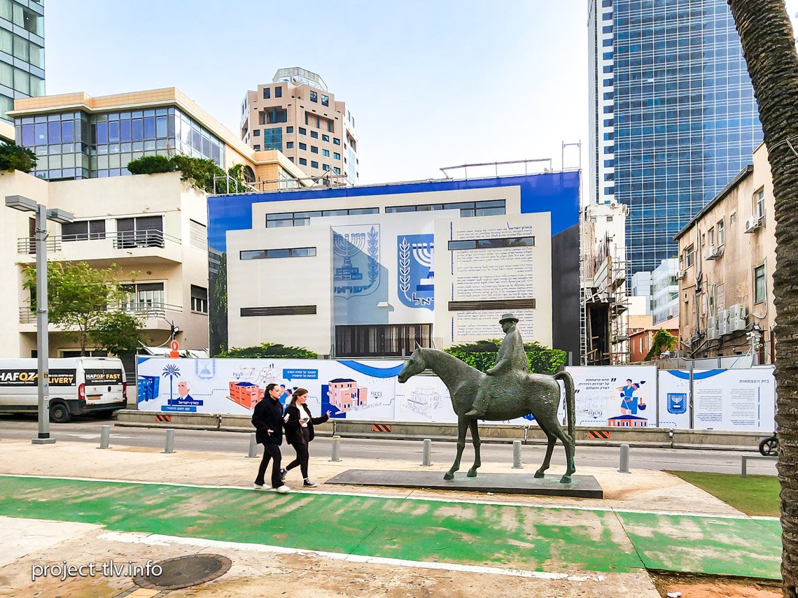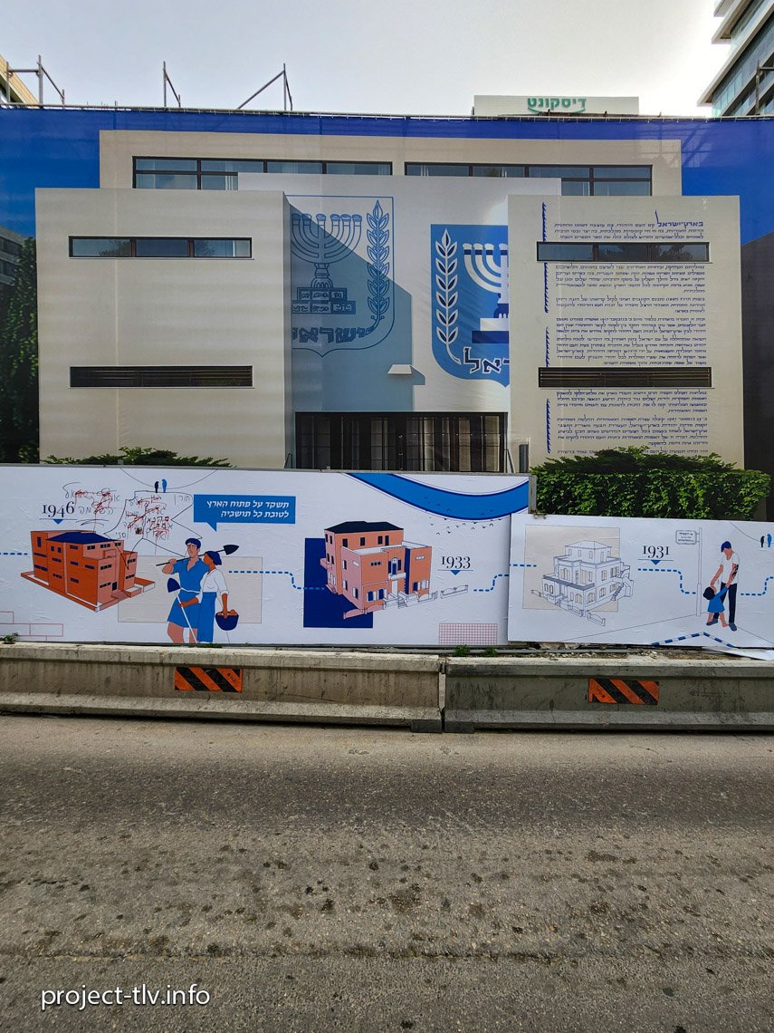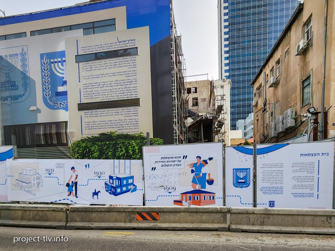שלט ממיקומו הזמני של בית העצמאות (בזמן עבודות השיפוץ)