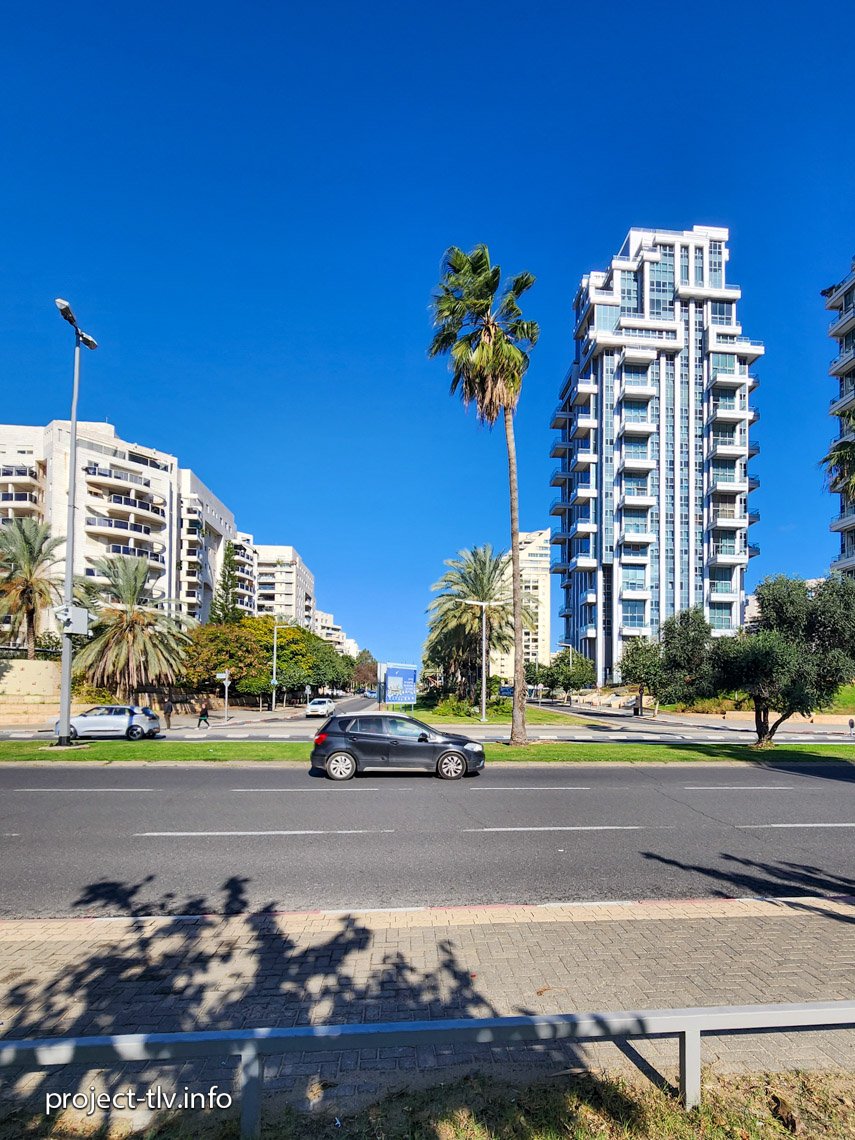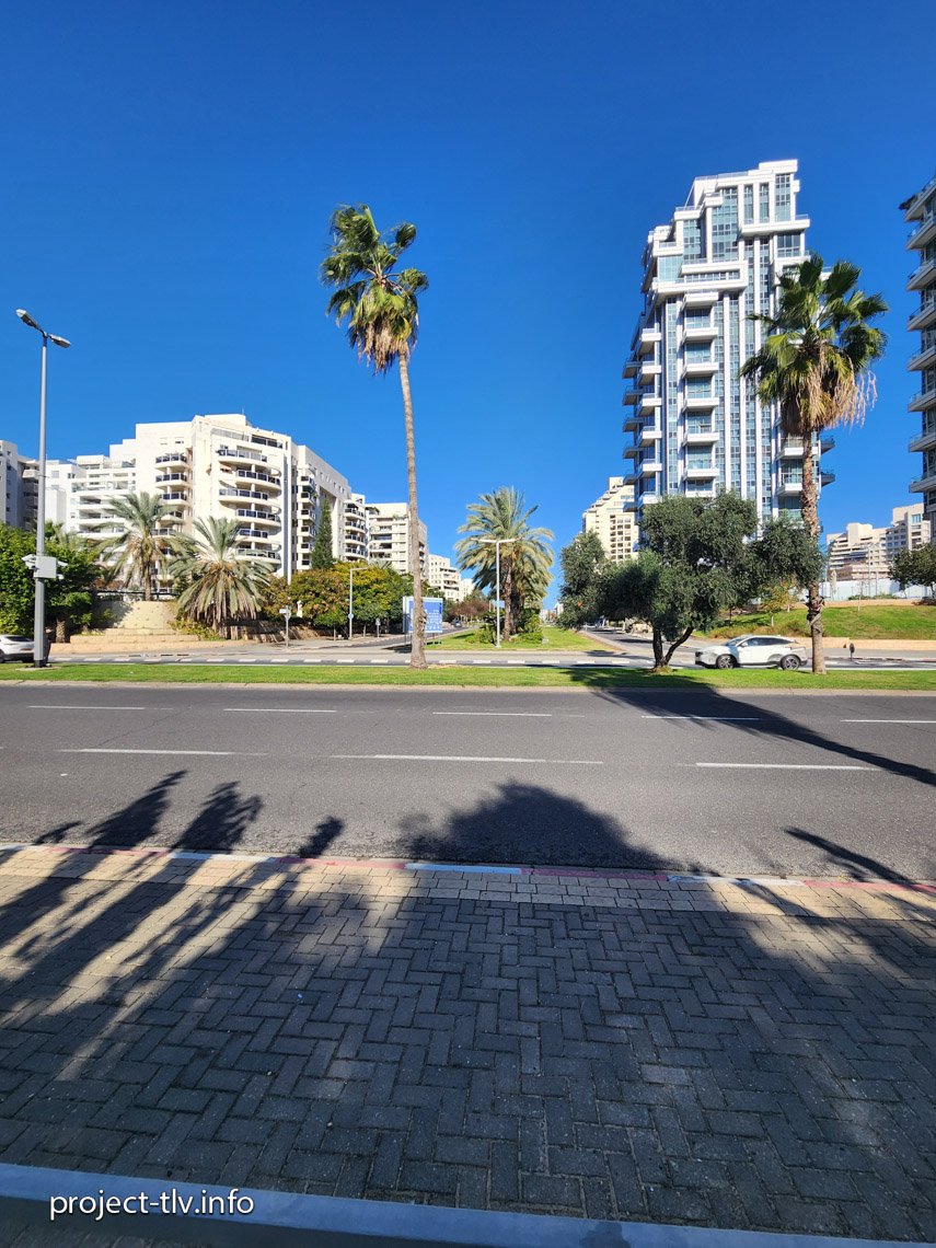 מבט מכיוון פארק הירקון לכיוון שדרות רוקח ושדרות לוי אשכול, ינואר 2025