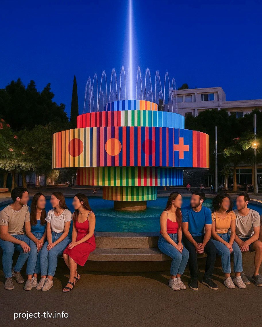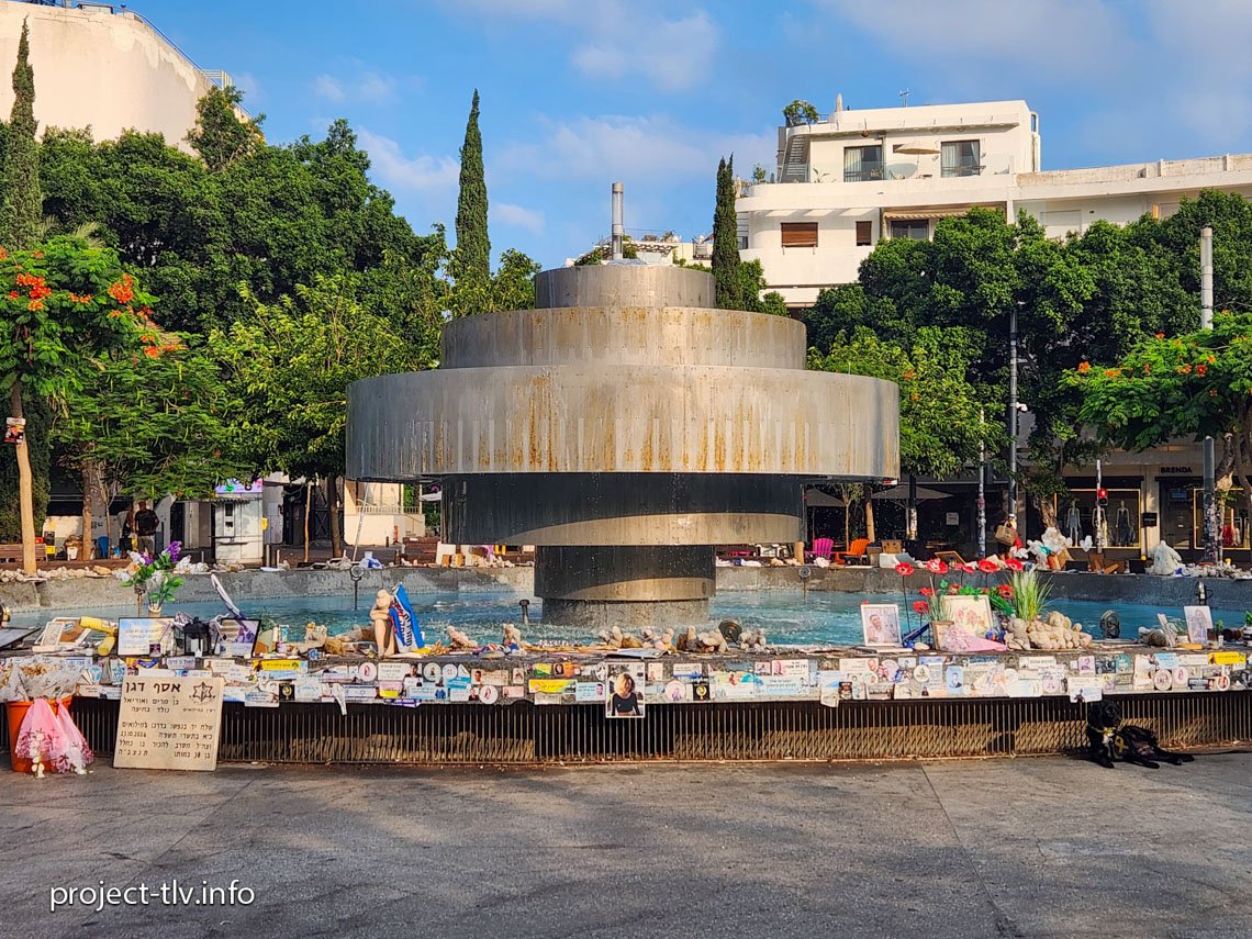מזרקת "אש ומים" בכיכר דיזנגוף (של האמן יעקב אגם) הפכה לסמל זיכרון מרכזי בעקבות אירועי השבעה באוקטובר ומלחמת חרבות ברזל. אלמנט האש בשם הפסל (ובפסל עצמו) הפך במובן מסויים לטעון ועלול לעורר תחושות קשות ומכאיבות.