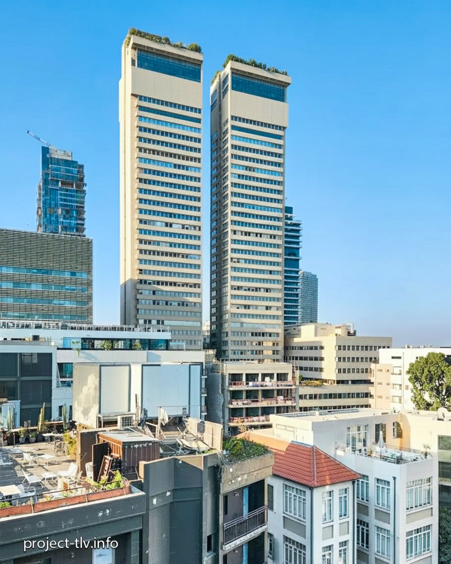 הצעה רעיונית מטעם "פרויקט תל אביב" לביטול הכביש העובר מתחת למגדל שלום ויצירת חצר פנימית עם צמחייה, אלמנט מים ומקומות ישיבה, ואליה תפנה קומת המסחר של המגדל – שיאפשר פתיחת בתי קפה ומסעדות. רעיון זה הינו חלק מרעיון שיחזור המבנה ההיסטורי של "גימנסיה הרצליה", הפונה לרחוב הרצל. החצר הפנימית המוצעת תהיה גם סוג של מחווה לחצר בית הספר, שנהרסה אף היא בשנות החמישים לטובת הקמת המגדל. | יולי 2024